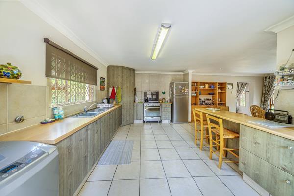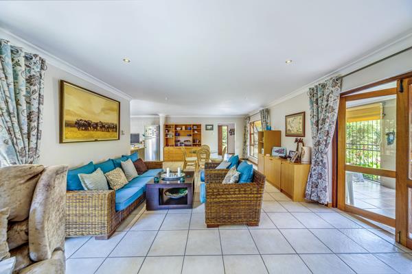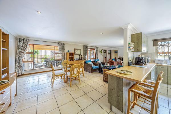 As you enter through a welcoming hallway, you are greeted by a spacious open-plan living area, beautifully tiled for easy maintenance. This generous space comfortably accommodates two lounge suites and a dining area, making it ideal for both relaxation and entertaining. The lounge opens onto a covered patio with roll down blinds , providing a seamless flow to the lush, manicured gardena true delight for gardening enthusiasts. The modern open-plan kitchen is designed for convenience, featuring a breakfast nook, a pantry, and a high-quality gas oven and hob. The home offers four well-sized bedrooms, all with built-in cupboards, or the option to configure one as a study. The main bedroom boasts an en-suite bathroom, while a second full bathroom serves the remaining rooms.