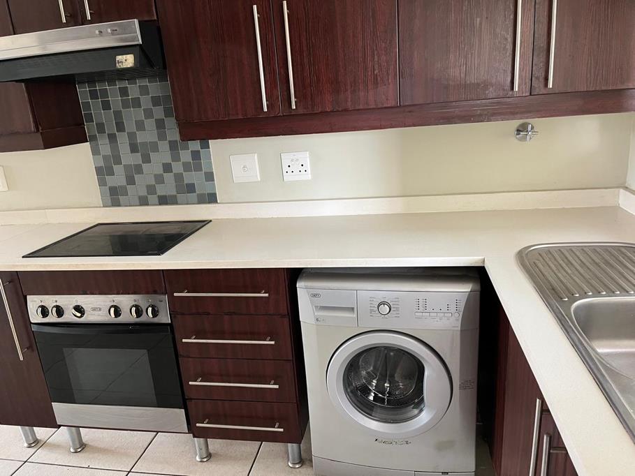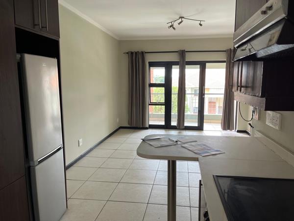 The kitchen is equipped with essential appliances, ample cupboard and counter space, hob, extractor and under counter oven. The kitchen flows effortlessly into the open concept living room and out onto a cosy balcony ideal for those outdoor moments.