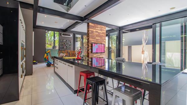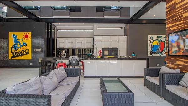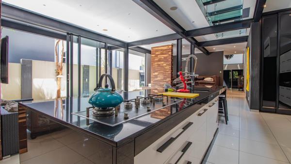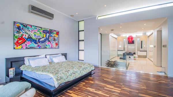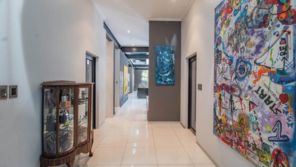 Extras include an integrated RTI security system with CCTV, solar power with an inverter system, a 500-litre water storage tank, an integrated sound system, a gas braai, a vacuum system, air conditioners and Mopani flooring in each room as well as the lounge area, an irrigation system, gas and electric geysers, and two double garages, one of which is air-conditioned, along with additional off-street parking for 6 vehicles.