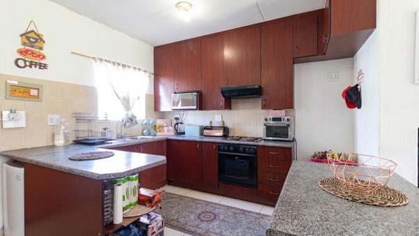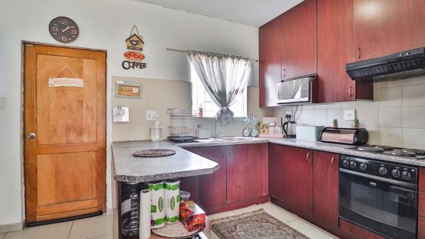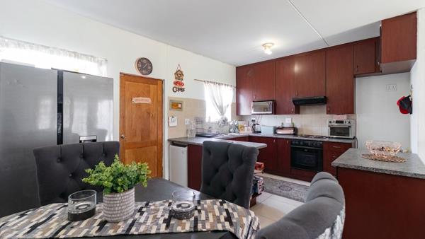 The home opens into a practical kitchen and dining area that flows easily into the lounge, leading out to your own private garden and covered patioan ideal spot for weekend braais, relaxed mornings, or watching little ones play.