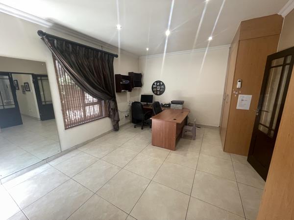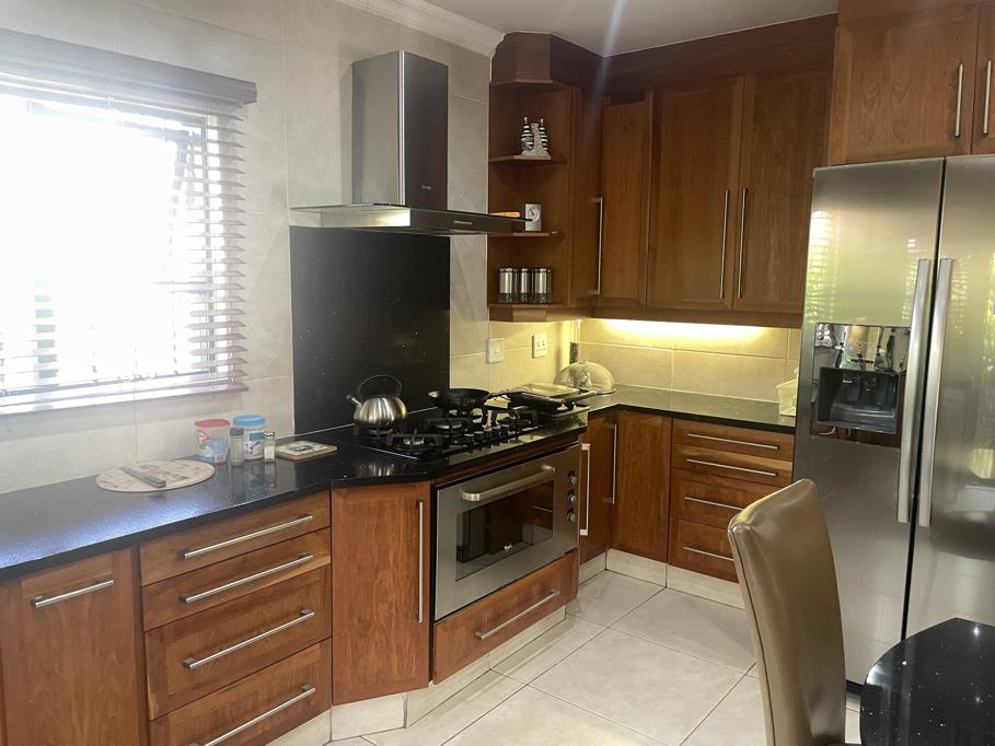 A grand entrance with a striking skylight sets the tone for this elegant home, leading into open-plan living areas finished with Italian porcelain tiles and stylish fitted blinds throughout. The gourmet kitchen features light wood cabinetry, granite countertops, a gas hob, and an electric oven, complemented by a separate laundry room for convenience.