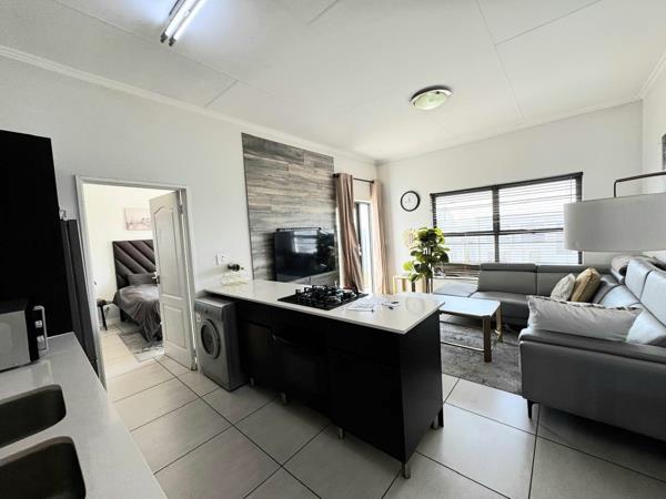 This modern One-bedroom, One-bathroom apartment offers comfortable living in a secure and vibrant complex. The apartment features an open-plan kitchen and living area with contemporary finishes, perfect for a young professional or couple. The bedroom is spacious with ample built-in cupboards, and the bathroom is stylishly designed with quality fittings.