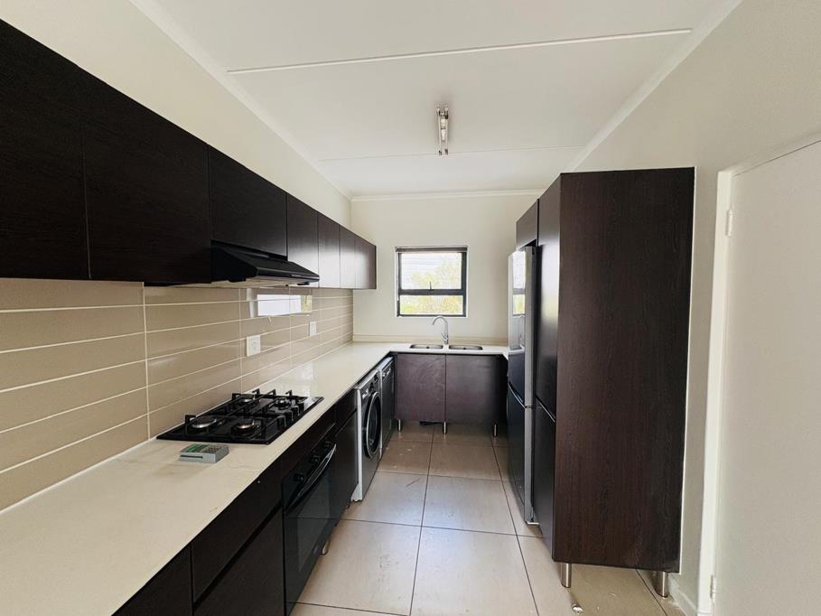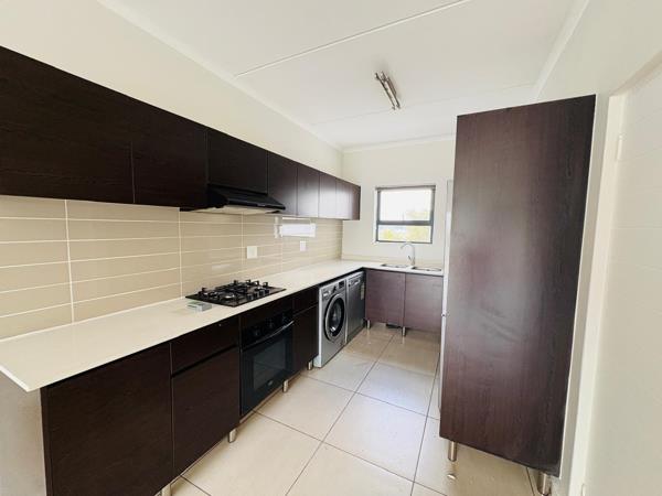 Step into a lifestyle of luxury and convenience with this expansive 3-bedroom, 2-bathroom first-floor apartment in the award-winning Greenstone Ridge. Perfectly designed for the modern family, this residence offers a seamless blend of space, style, and world-class security. The heart of the home is a bright, open-plan living and dining area that flows into a designer kitchen. Finished with sleek Caesarstone countertops and a gas hob, the kitchen comes fully equipped with a full suite of eco-friendly Defy appliances fridge, washing machine, tumble dryer, and dishwasher. The living area extends onto a large private covered balcony, offering the perfect elevated space for entertaining guests or enjoying a quiet evening.