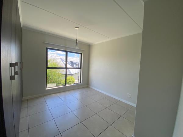 The apartment features a bright open-plan lounge and dining area opening onto a private balcony. The modern kitchen includes Caesar stone countertops and eco-friendly appliances fridge, washing machine, tumble dryer, and dishwasher. All three bedrooms offer built-in cupboards, with the main bedroom featuring an en-suite bathroom. The unit includes two covered parking bays and ample visitor parking. Enjoy 24-hour security and access to a full lifestyle centre with a gym, swimming pool, restaurant, and childrens play area.