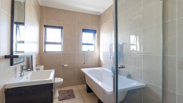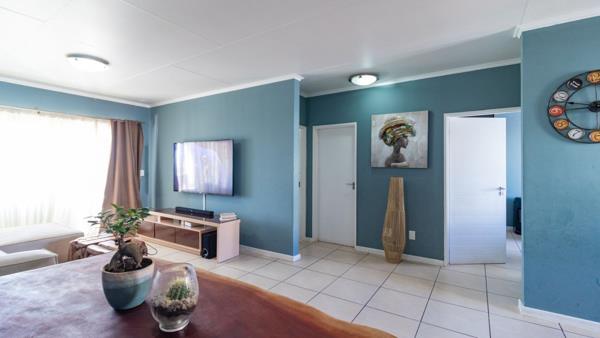 This 96 sqm first-floor apartment features an open-plan kitchen with quartz countertops and flows to a large balcony. The complex includes a lifestyle centre with a gym, braai facility, restaurant, and swimming pool.