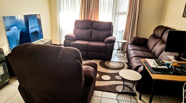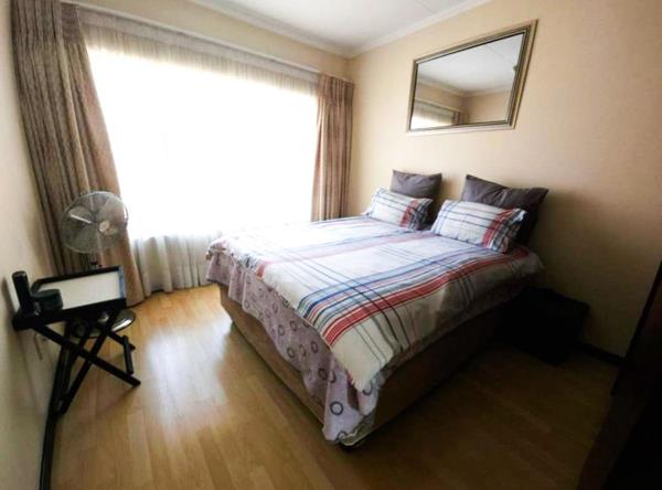 The complex features 24-hour security with biometric access, two communal pools, a gym, squash court, braai areas, and an on-site creche. Two covered carports are allocated to the unit.