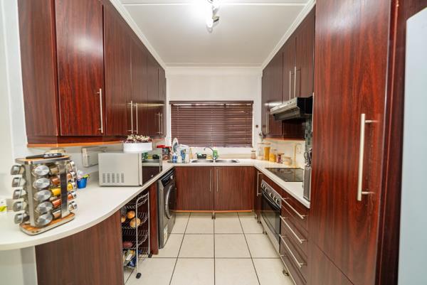 The functional kitchen provides generous counter space and plenty of cupboard storage, with a dedicated area for appliances, making daily meal preparation easy and practical.