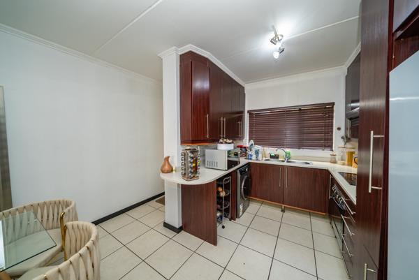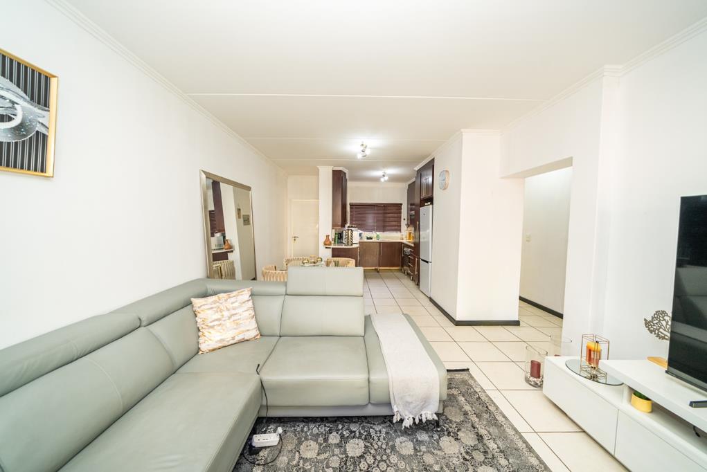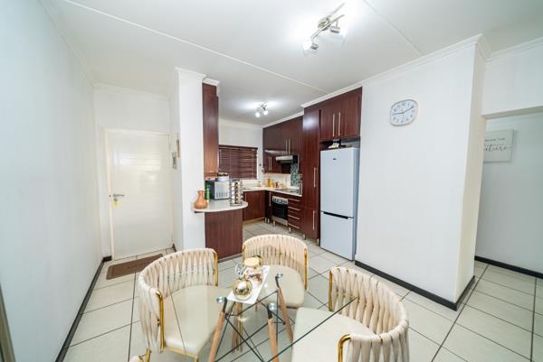 The open-plan lounge and dining area is bright and inviting, filled with natural light. The well-designed layout creates a comfortable flow, ideal for both everyday living and entertaining.