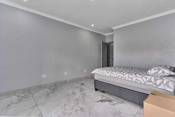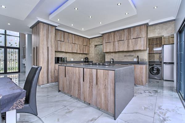 Set on a generous 636m2 erf with over 350m2 under roof, this almost completely refurbished double-storey home offers spacious, modern family living in a quiet road with a desirable north-facing frontage. The upper level features four well-sized en-suite bedrooms, each with balcony access, along with renovated bathrooms and a comfortable pyjama lounge. Downstairs includes an additional bedroom with a private toilet that can function as a guest suite or be adapted for greater privacy, making it ideal for multi-generational living. The home boasts a light and airy open-plan living area and a newly renovated kitchen fitted with a gas hob. Aluminium window frames and Trellidor-type security features are installed throughout most of the home, while air-conditioners ensure year-round comfort. Additional features include an installed generator, store room, jungle gym, double garage with extra storage, and additional off-street parking, making this a well-equipped and versatile family home. Pebble Creek Estate features: a green belt, lush parks and kids play areas.