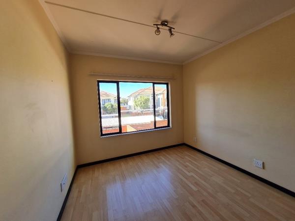This well-maintained 75 m² first-floor townhouse offers comfortable and convenient living in a secure complex. The home features two spacious bedrooms and one modern bathroom, with the main bedroom benefiting from an en-suite for added privacy. The open-plan lounge and fitted kitchen create a welcoming living space, with the kitchen finished with stylish granite countertops and ample cupboard space.