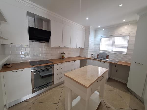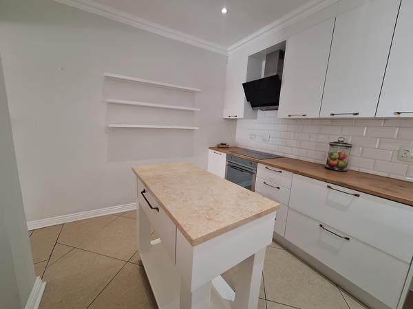Close to all the popular malls, schools and medical centres. This beautiful apartment is in pristine condition. Not a thing to be done!!! The kitchen is gorgeous! Light and bright with excellent cupboard space. Plumbed for a washing machine and tumble dryer. Smeg stove with a customized rolling kitchen island. The kitchen opens onto a very spacious open plan lounge and dining area.