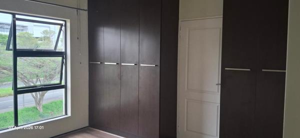 This neat top floor apartment has a double volume ceiling in the open plan lounge which makes the unit light and bright. The kitchen offers ample cupboards and includes 3 appliances fridge, washing machine and tumble dryer and there is enough space to fit a dining table. The lounge opens onto a balcony offering great sunset views. The two bedrooms have built in cupboards and the main is en-suite with a double volume ceiling, the 2nd bedroom has use of a full family bathroom.