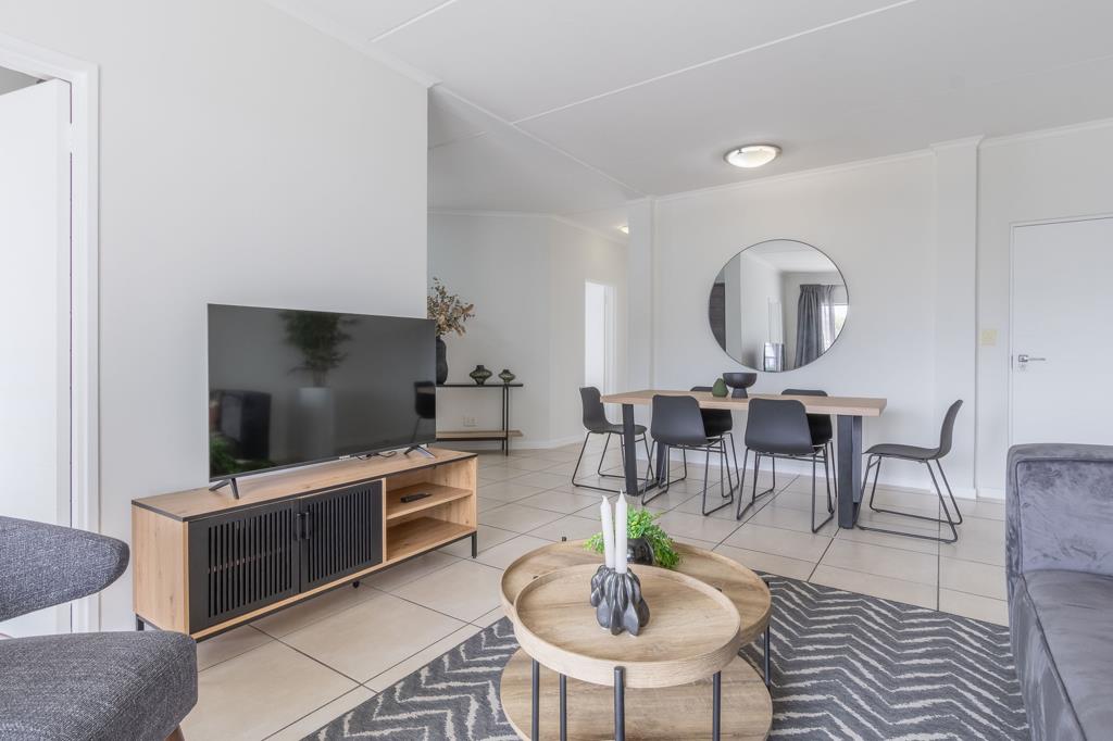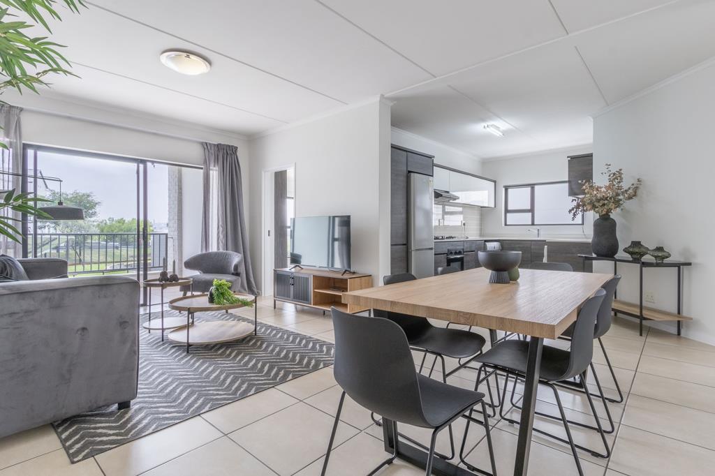 Inside the unit, the focus is on modern functionality and seamless living. The kitchen is a standout feature, equipped with a gas hoba vital asset for navigating load sheddingand a full suite of essential appliances including a fridge, washing machine, tumble dryer, and dishwasher. Complemented by durable, polished tiled flooring throughout, the space offers a clean, contemporary feel that caters perfectly to the demands of a busy, modern lifestyle.