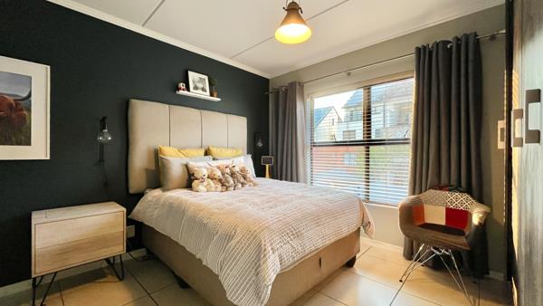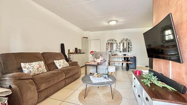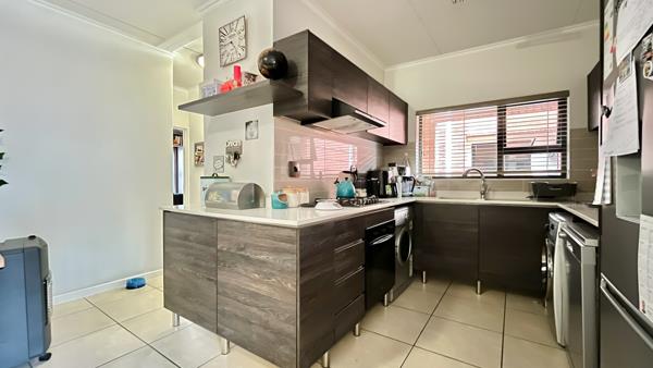 Discover this modern 3-bedroom, 2-bathroom apartment situated in the sought-after Greenstone Crest complex in Edenvale, South Africa. The inviting open-plan living area seamlessly connects the lounge, dining space, and a contemporary kitchen, all featuring consistent tiled flooring for a sleek and low-maintenance finish. The kitchen boasts stylish dark wood-grain cabinetry, light countertops, and is equipped with integrated appliances, including a washing machine and dishwasher, ensuring both functionality and aesthetic appeal.