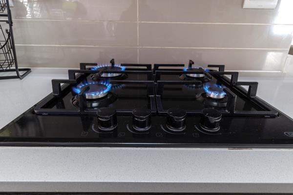 It is equipped with a Gas hob, single door fridge, washing machine and a tumble dryer.