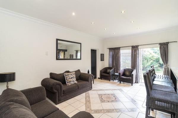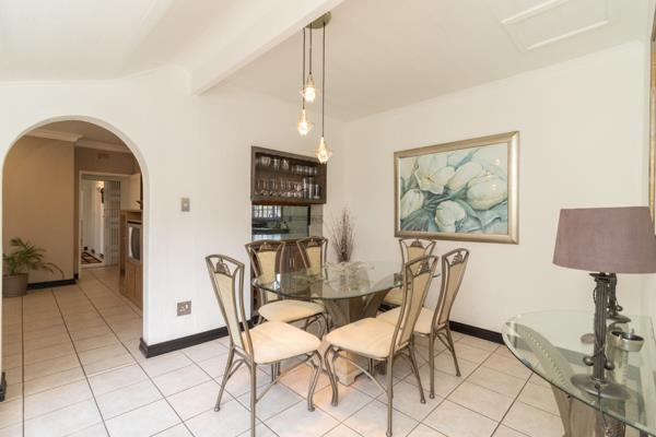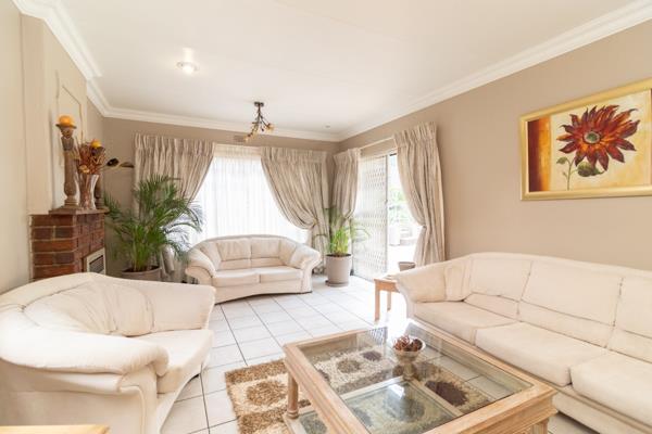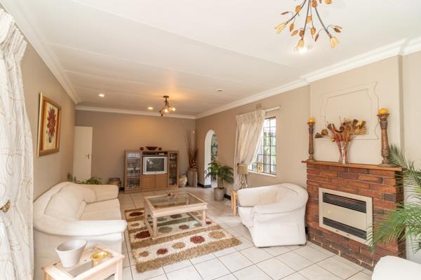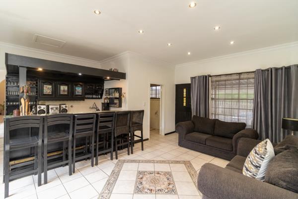 This inviting property offers 4 sunlit, carpeted bedrooms with modern mirror-door cupboards, complemented by 3 stylish bathrooms, including a main en-suite. Enjoy a warm, welcoming lounge with an anthracite fireplace, a separate dining room, and a versatile entertainment area complete with a built-in bar and 5 bar stools. The bar area can easily be converted into an income-generating flatlet. The kitchen features an eye-level oven, ample workspace, and room for 3 under-counter appliances.