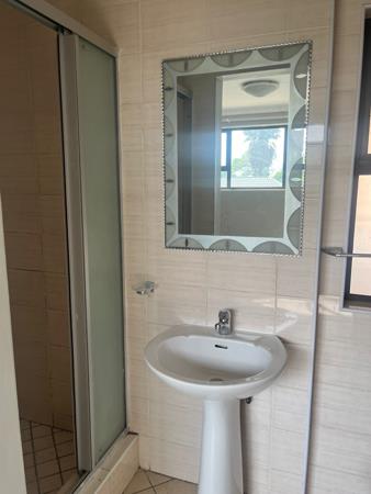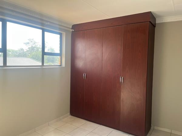 Both bedrooms are well-sized with built-in cupboards, and the bathroom includes a shower and a basin. Natural light fills the unit, creating a warm and welcoming atmosphere.
