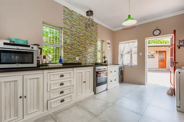 The main bedroom features an ensuite bathroom, built-in cupboards and tiled floors. Bedrooms 2 and 3 boast built-in cupboards and classic parquet floors adding warmth and character. Additional bathroom with a guest toilet, ensuring convenience for family and guests