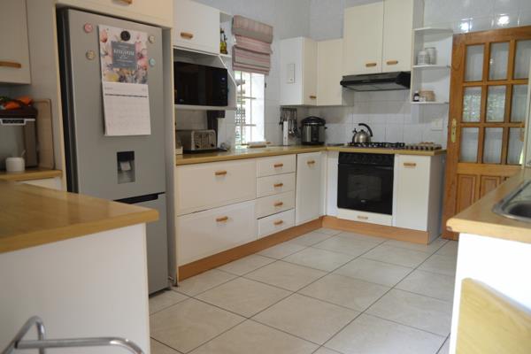 Outdoors, a generous back garden offers space for children and pets to enjoy, complete with a sparkling swimming pool that is solar heated with two solar panels for year-round enjoyment. The property also features a double garage, with one garage allowing for the parking of a trailer as well as a car. Carport for 2 vehicles and open parking for further cars. Additional conveniences include staff accommodation and a separate laundry, rounding off a well-kept family home designed for comfortable living in a secure and established neighbourhood.