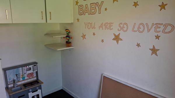 Step outside to a private paved patio and garden area, offering a tranquil space for relaxation or outdoor activities. The property is pet-friendly and includes a Wendy house for additional storage or utility. A dedicated parking bay ensures secure off-street parking for one vehicle.