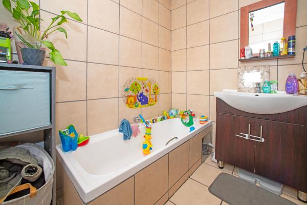 This lovely duplex is situated in a secure, low-maintenance complex and offers two bedrooms, one full bathroom, and two guest toilets one upstairs and one downstairs. It features an open-plan kitchen with granite countertops, ample cupboard space, and a lounge area. There is also a small storeroom located under the staircase.