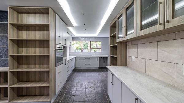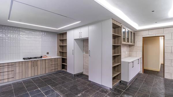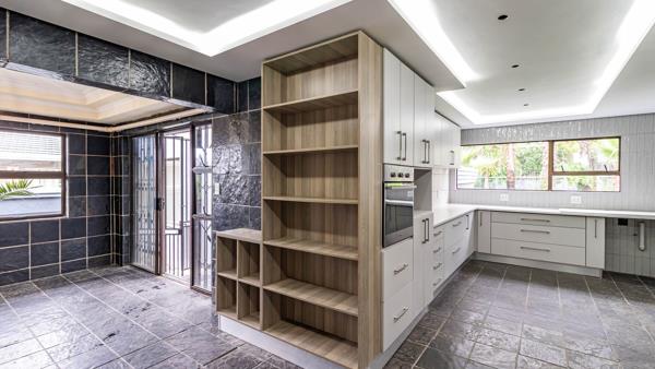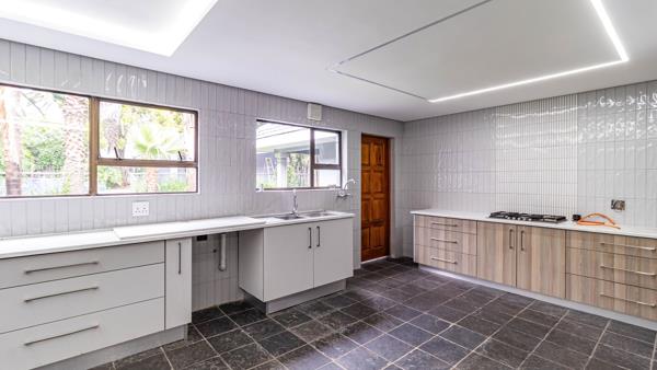Outdoor living is well-catered for with a welcoming patio, a sparkling swimming pool accompanied by a pool patio and braai area, offering the ideal setting for gatherings and warm summer days. Additional features include a separate laundry, staff quarters, and a fully self-contained cottage with an open-plan bedroom and kitchen, along with a full bathroomideal for extended family or rental income.