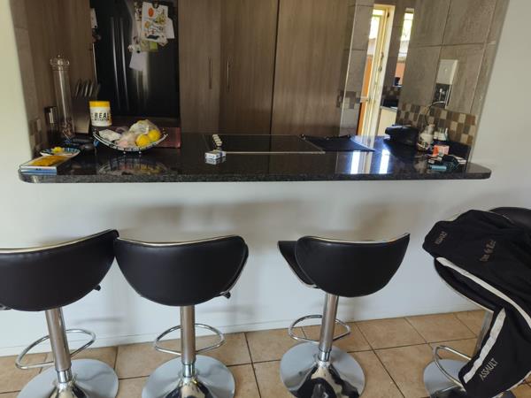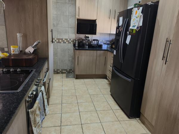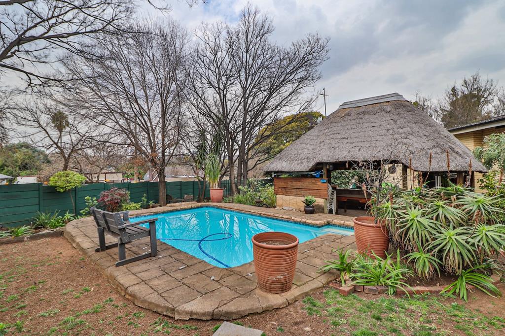 There is a tiled lounge with a fireplace for those cold nights and a dining room opening up to spacious Lapa with a built in braai and sparkling pool in a private garden.