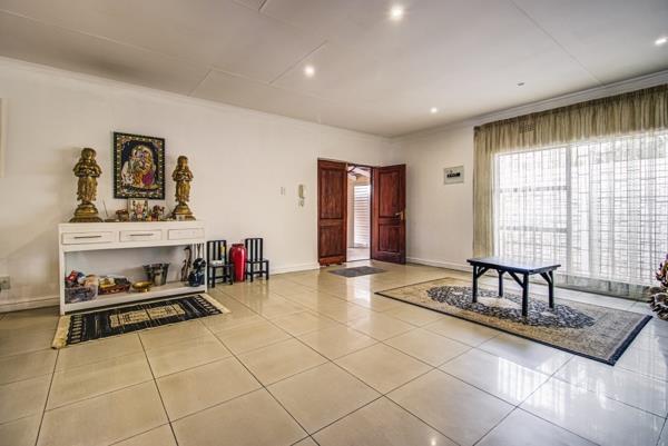 Tiled throughout and with a lovely outdoor patio area with a built-in braai perfect for entertaining or relaxing with the family. The property offers staff quarters, double garage and covered parking.