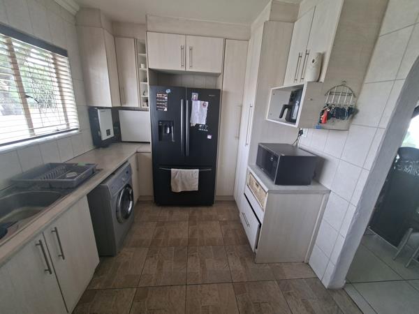 The home features three well-sized bedrooms with built-in cupboards, serviced by a neat and functional bathroom layout. The living areas flow effortlessly, creating a warm and inviting space ideal for family time and entertaining.