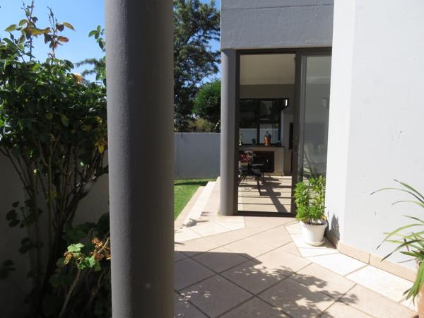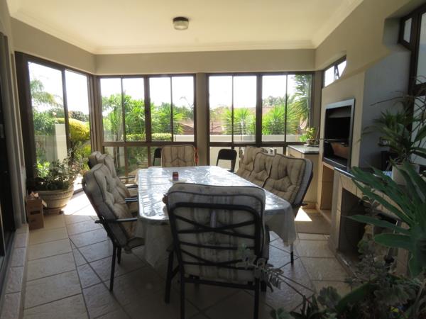 Patio is enclosed with built in braai and tiled floor with doors leading out onto the garden.