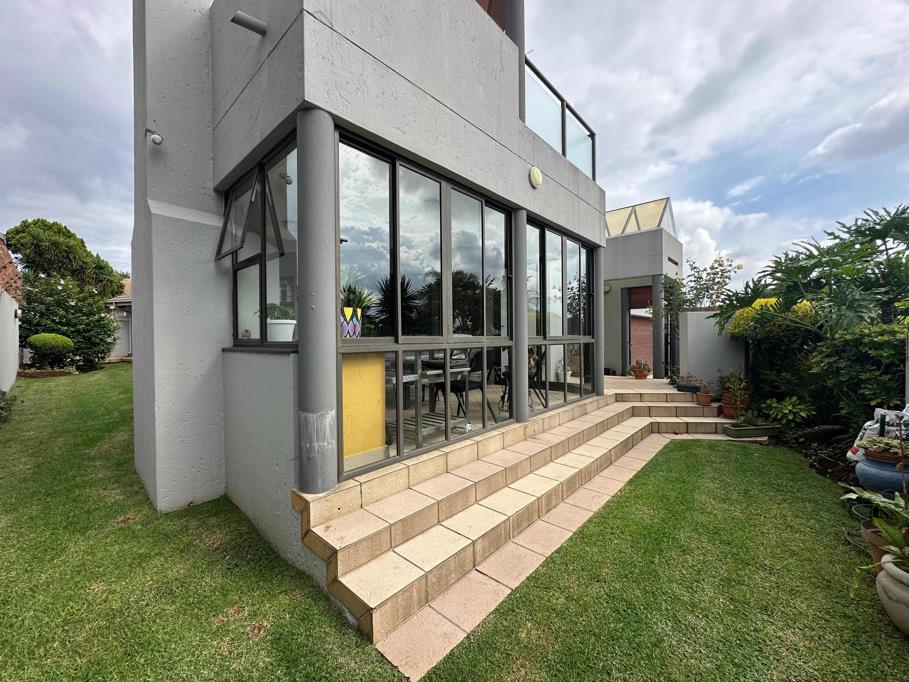 Contemporary 4-bedroom residence located in the secure, gated community of Marais Steyn Park. The expansive main bedroom features an en-suite bathroom and a walk-in closet, both enhanced by a skylight. This suite opens onto a private balcony, perfect for relaxing. The additional bedrooms boast laminate flooring and share a spacious bathroom. The open-plan layout seamlessly connects the lounge, which flows onto a patio featuring a built-in braai, dining room, and expansive kitchen with a scullery and pantry. Noteworthy features include aluminum window frames, a ducted air conditioning system, domestic quaters, an alarm system, and electric fencing for added security.