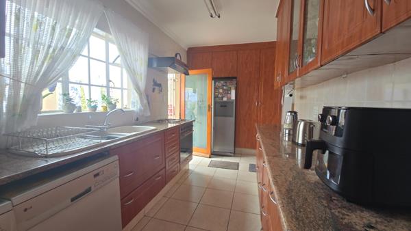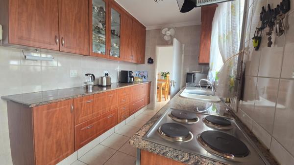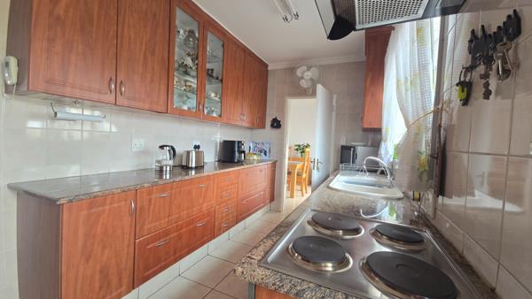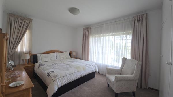 The kitchen is a true highlight, finished with sleek black granite countertops and equipped with ample cupboard space. It accommodates two appliances and a double-door fridge, and opens out to a sunny rear patio and a separate workshop for hobbies or extra storage. A dedicated study adds versatility, whether for reading, working from home, or creative pursuits. At the front, a covered patio with a louvre deck overlooks a beautifully established garden, offering a tranquil outdoor retreat. The unit includes two carports for secure parking, a solar installation with six panels for energy efficiency, and the added benefit of 24-hour security. Weekly domestic help for three hours completes the offering, making this a truly low-maintenance and serene lifestyle choice.