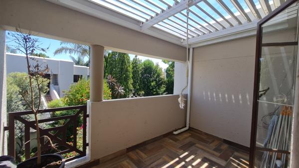 Step outside to a private covered balcony, an ideal spot for relaxation, featuring stylish wood-look tiled flooring and a slatted pergola roof. This outdoor retreat, enhancing the sense of tranquility. Residents also enjoy access to excellent communal amenities, including a sparkling swimming pool, a clubhouse, and a communal braai area, perfect for social gatherings. The property includes one dedicated parking bay.