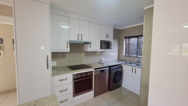 Discover modern living in this inviting 2-bedroom, 1-bathroom apartment, perfectly situated within a secure complex in Marais Steyn Park, Edenvale. Spanning 74 square meters, this residence offers a contemporary design with an emphasis on comfort and functionality. The heart of the home is its sleek, open-plan kitchen, boasting glossy white cabinetry, elegant granite countertops. A practical breakfast bar provides additional dining space, seamlessly connecting to the bright lounge area.