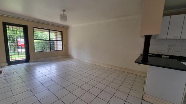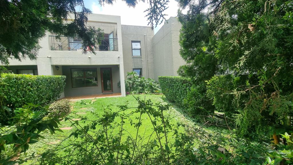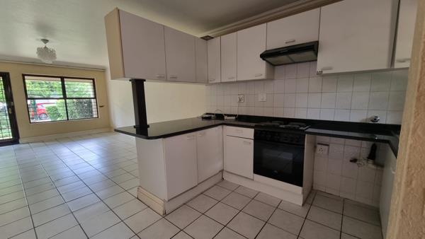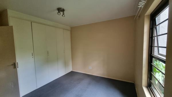 The apartment features two spacious bedrooms, both fitted with carpets, providing a warm and comfortable living environment. The bedrooms have ample cupboard space. The main bedroom overlooks the garden. The bathroom is neatly finished and includes a shower, basin, and toilet, with dedicated space for a washing machine, adding convenience to everyday living.