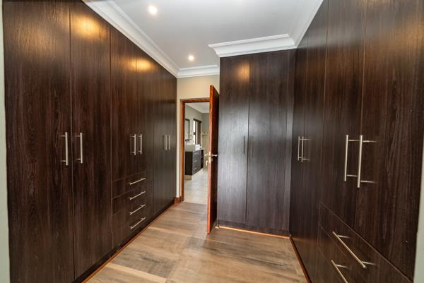 A conveniently positioned guest toilet serves the living areas. In addition, the home boasts a huge double-volume entertainment room, ideal as a games room, man cave, or easily convertible into a cottage or additional accommodation for extended family or a huge exclusive main en-suite wing. Large windows and a large door connect this space seamlessly to the main living areas.