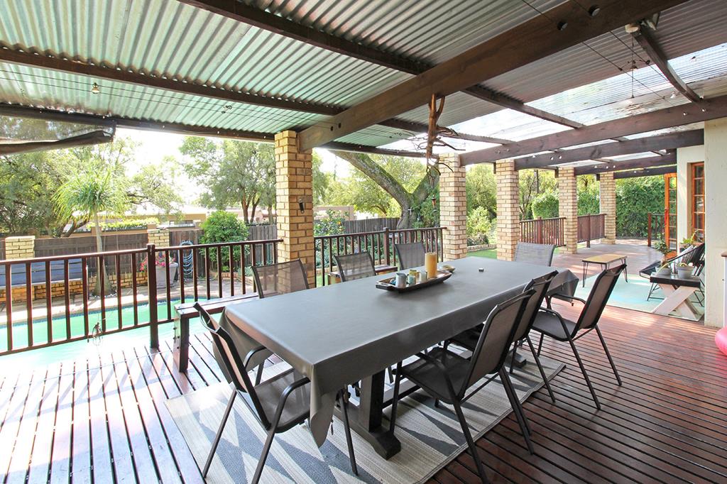 This well-maintained home offers a welcoming and practical living environment, accessed via a spacious driveway and landscaped garden, and comprises four bedrooms, two bathrooms including a main en-suite, a lounge, dining room, and a functional kitchen with a gas hob and space for additional appliances, with parquet flooring and wooden window frames adding character. The property further includes a fully renovated flatlet with its own kitchenette and bathroom, two single garages, and an external storeroom or office area separated from the garage space. The garden features a five-tier irrigation system, a generously sized solar-heated swimming pool with a cover, mature trees, a treehouse, and a jungle gym. Situated in Lakeside Village, the home is ideal for families seeking a secure, low-maintenance lifestyle, with Lakeside offering controlled access, multiple parks, childrens play areas, jungle gyms, a skate park, outdoor gym facilities, communal chess areas, and a strong community-focused setting.