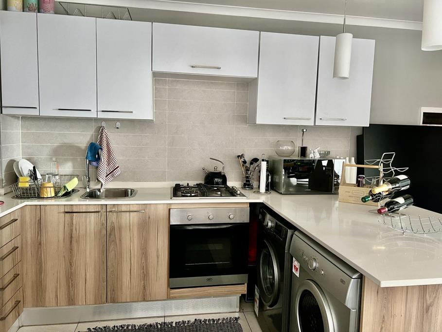 Open-plan kitchen and living, balcony with with fitted gas braai.
