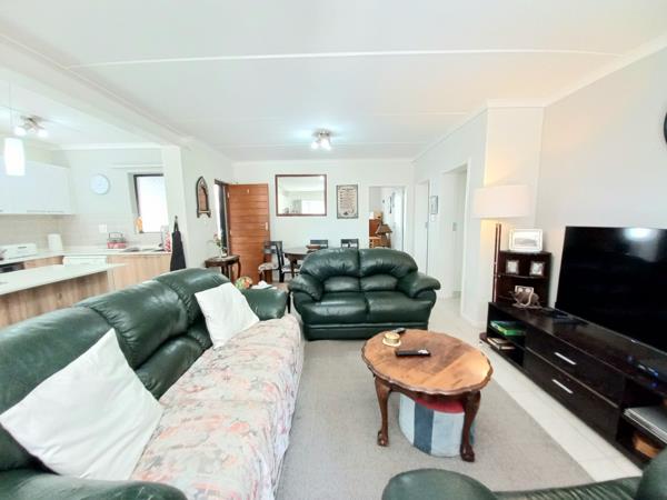 Located in an up-and-coming area, this lovely and modern 104-square-meter garden unit offers stylish, open-plan living with ample space and security. The open-plan lounge and dining area feature sleek tiled floors and lead seamlessly into a well-designed kitchen with Quartz countertops, a center island with a gas stove, and plenty of cupboard space for all your needs. Step outside to a cozy covered patio with a built-in gas braai, perfect for entertaining, overlooking your private pet-friendly garden. The main bedroom is spacious with ample built-in cupboards and a beautiful tiled en-suite bathroom complete with a double basin, shower, and toilet. The second bedroom is also well-sized with tiled floors and built-in cupboards, while the family bathroom includes a bath, shower, basin, and toilet.