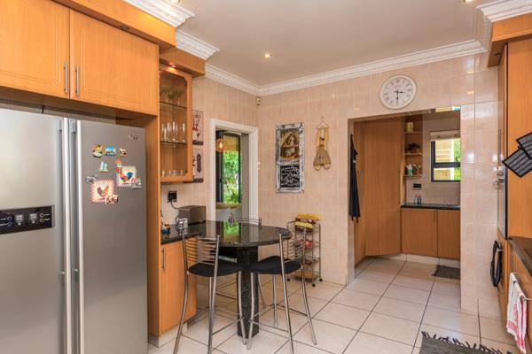 Additional features include a double automated garage, ample driveway parking, upgraded aluminium windows throughout, a storeroom and an outside staff toilet. The home is also fitted with a 5kVA GoSOLR solar system on a monthly rental of R1,800, providing improved energy efficiency and reduced reliance on the grid.