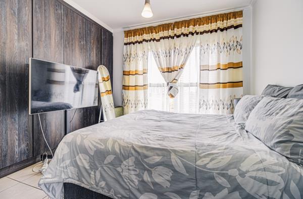 All three bedrooms are well-sized with built-in cupboards. The main bedroom features a modern en-suite bathroom, while the second bathroom is shared by the remaining bedrooms and guests.
