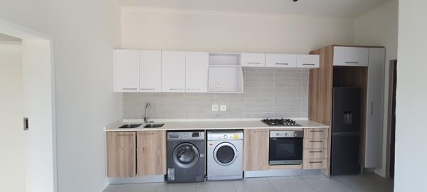 Available is this 1 bed, 1 bath apartment on the 3rd floor is located in the secure Fish Eagle View residential estate in Modderfontein. The unit features an open plan living area and a kitchen equipped with a gas hob and electric oven. Appliances included are a fridge, washing machine, and tumble dryer. The apartment also has a smart prepaid electricity system and a spacious bedroom.