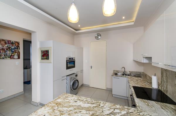 Kitchen: Open-plan design with Caesarstone countertops, ample cupboard space, and a breakfast counter. Comes equipped with high-quality appliances, including a stove, oven, fridge, convection microwave, washing machine and dishwasher.