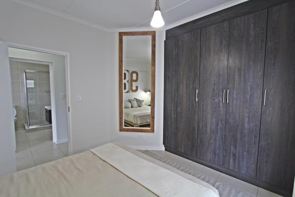 The master suite serves as a sophisticated retreat with its own en-suite bathroom, while two additional spacious bedrooms share a beautifully appointed family bathroom, making it ideal for a growing family or a dedicated home office setup. Residents benefit from amenities at the on-site Lifestyle Centre, including a gym, Spa, swimming pools, and a restaurant. With top-tier 24-hour security and close proximity to the Modderfontein Nature Reserve and Flamingo Shopping Centre, this home offers a secure, upscale lifestyle in a thriving eco-conscious community.