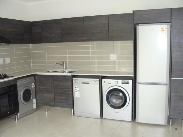 The modern kitchen is fully equipped with premium appliances, including a fridge-freezer, washing machine, thermal dryer, and dishwasher. One undercover parking bay is included for your convenience.
