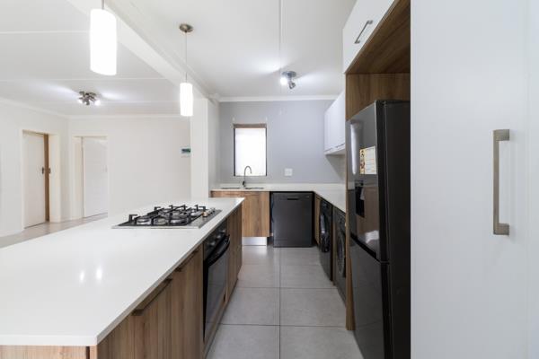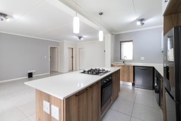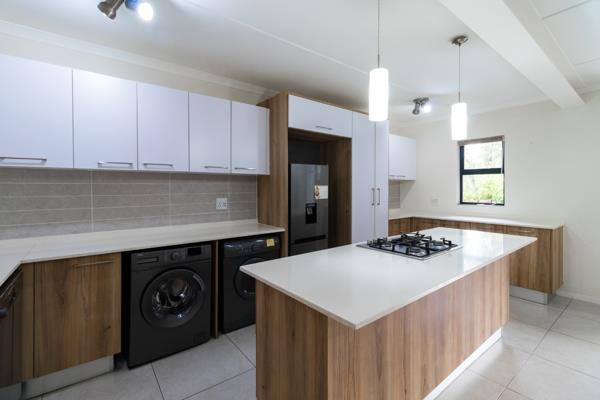 This contemporary and stylish ground floor apartment offers the perfect blend of modern living and tranquil nature. Set on the edge of Modderfontein Nature Reserve, it features a private, pet-friendly wraparound garden and brand-new aluminum stack doors opening from the covered patio for seamless indoor-outdoor living.