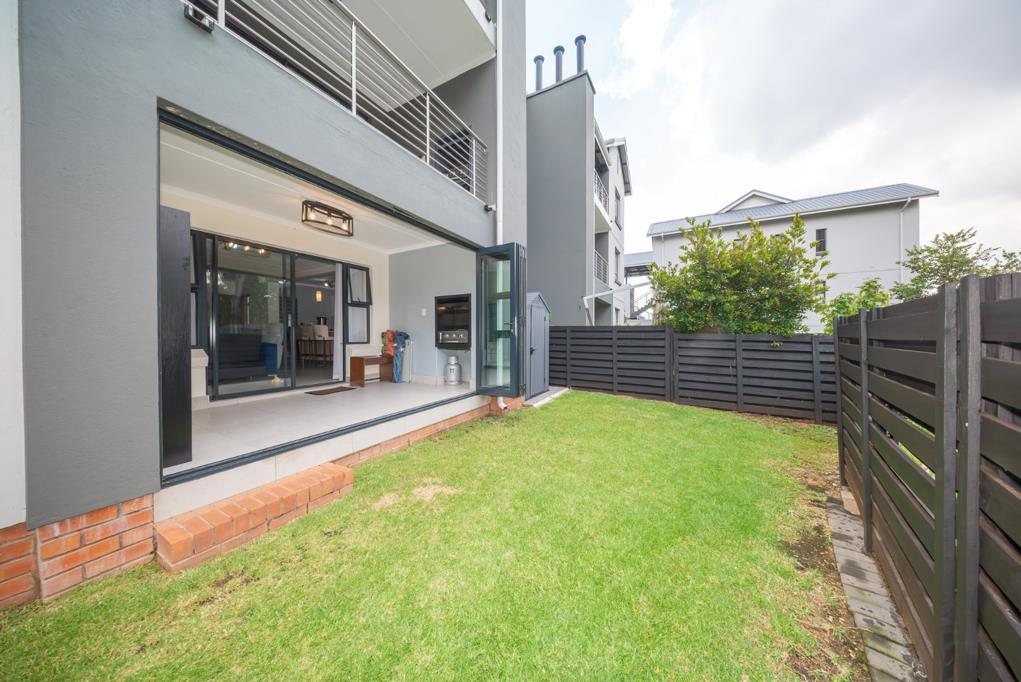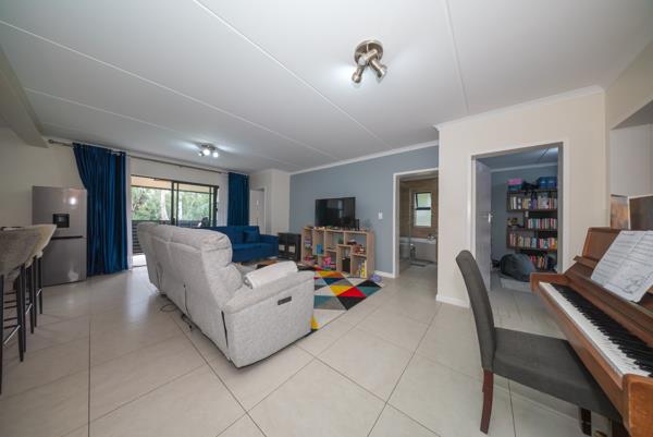 The living area flows seamlessly onto an enclosed covered patio with stackable doors, perfectly positioned with view of the Modderfontein Nature Reserveoffering a sense of tranquillity and an escape from the hustle and bustle of city life.