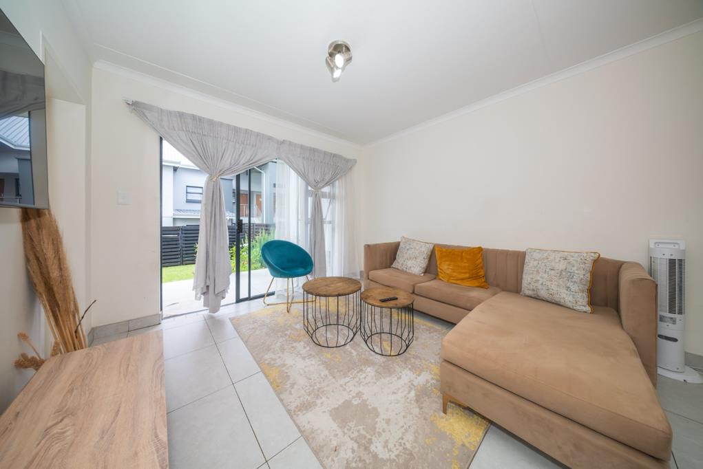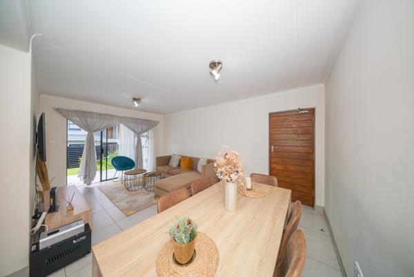 The living area flows seamlessly onto a covered patio with a built-in gas braaiideal for entertainingwhich opens onto a beautifully manicured private garden, creating a tranquil and inviting outdoor retreat.