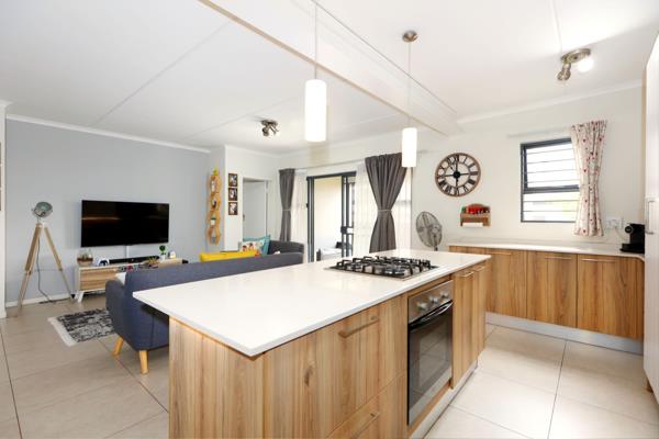 The home features a spacious open-plan layout, seamlessly combining the kitchen, dining, and TVfamily area. This inviting living space flows effortlessly onto a private patio, overlooking a lush, green garden, ideal for relaxing or entertaining guests.