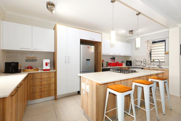The kitchen is beautifully designed and fully equipped with top-of-the-range appliances, a stylish center island with ample countertop space, and plenty of built-in cupboards, making it both functional and visually appealing.